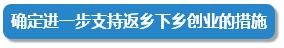 1. 加大政策支持。返乡下乡创业人员可在创业地享受与当地劳动者同等的创业扶持政策。将首次创业、正常经营1年以上的返乡创业农民工纳入一次性创业补贴支持范围。对回迁或购置生产设备的返乡下乡创业企业,有条件的地方可给予一定补贴。