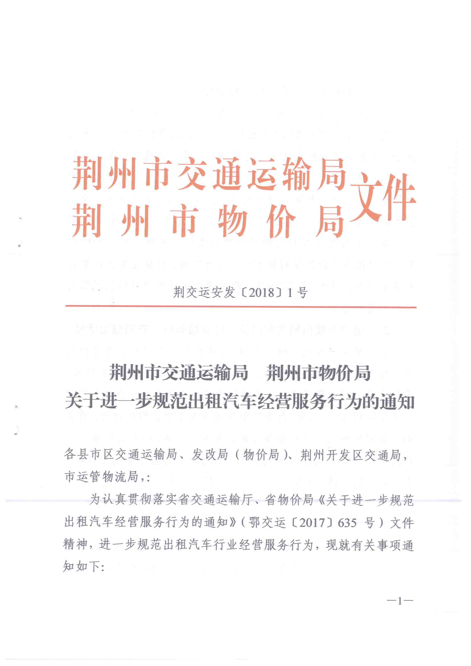bet365比分直播 荆州市物价局关于进一步规范出租汽车经营服务行为的通知(荆交运安发〔2018〕1号)