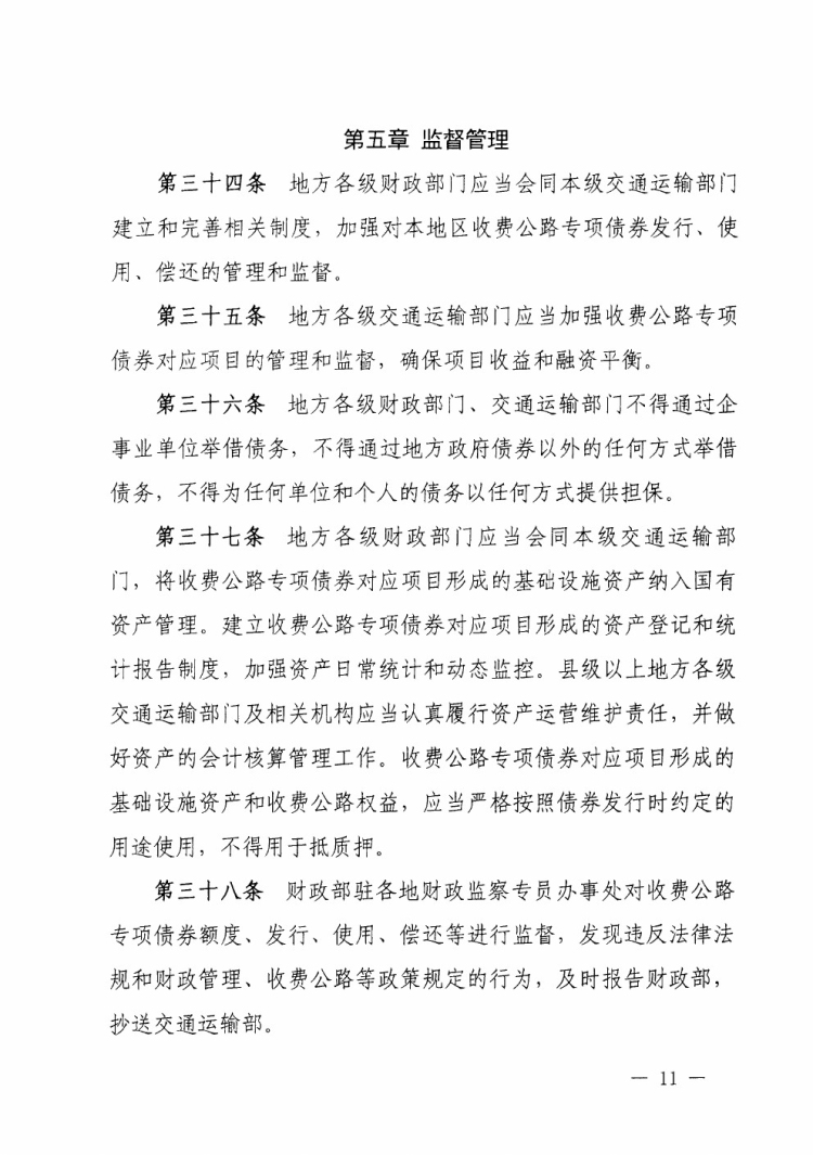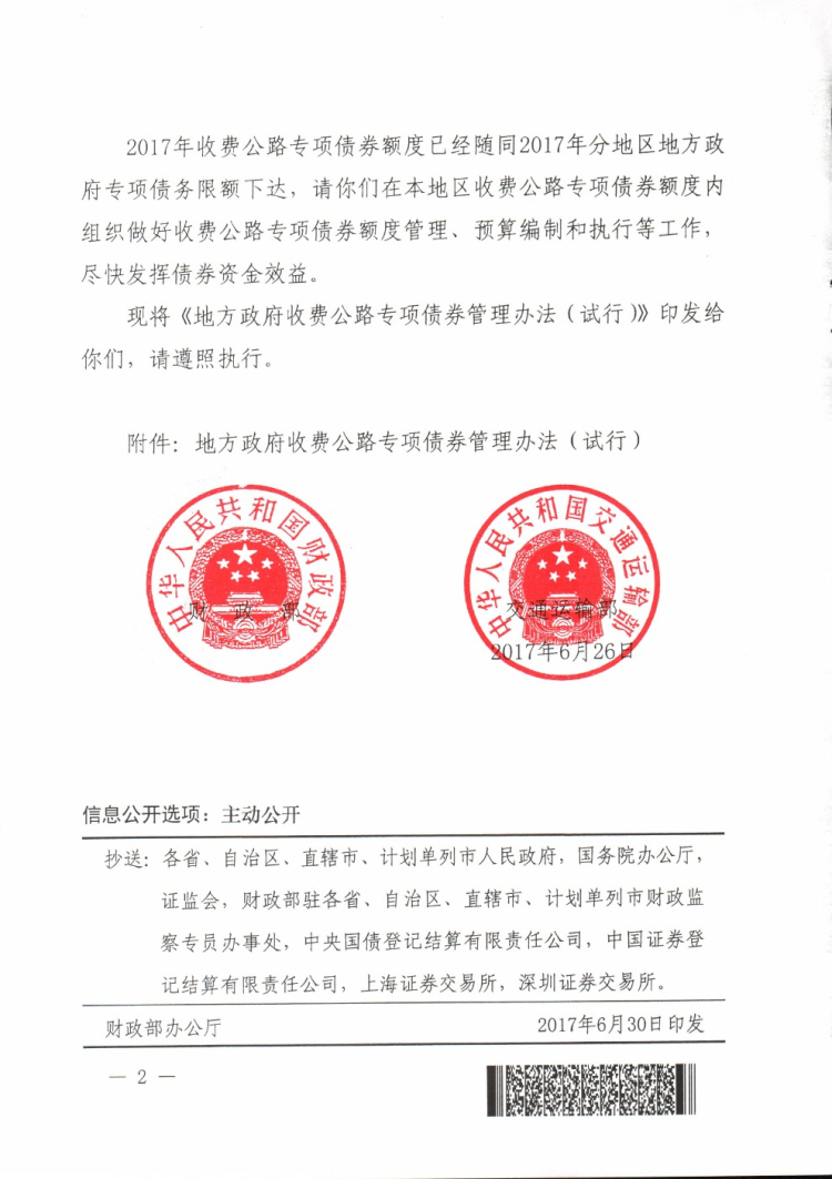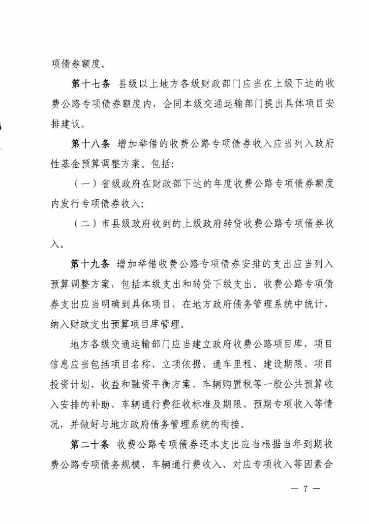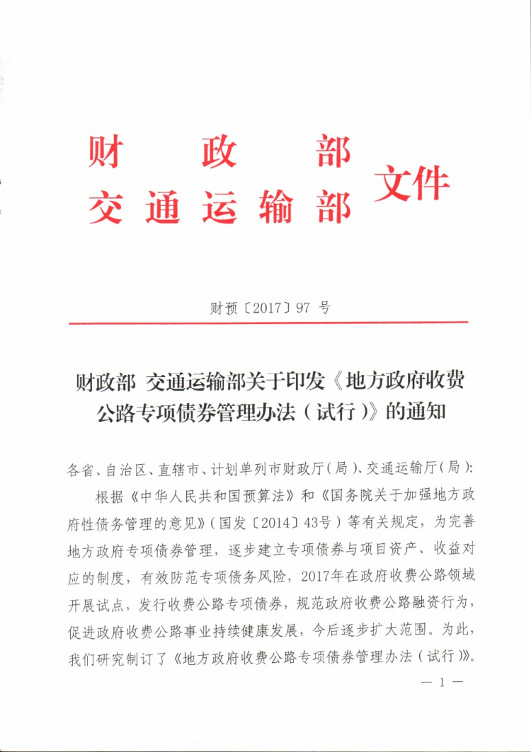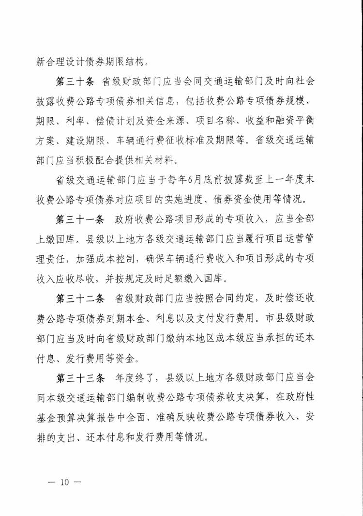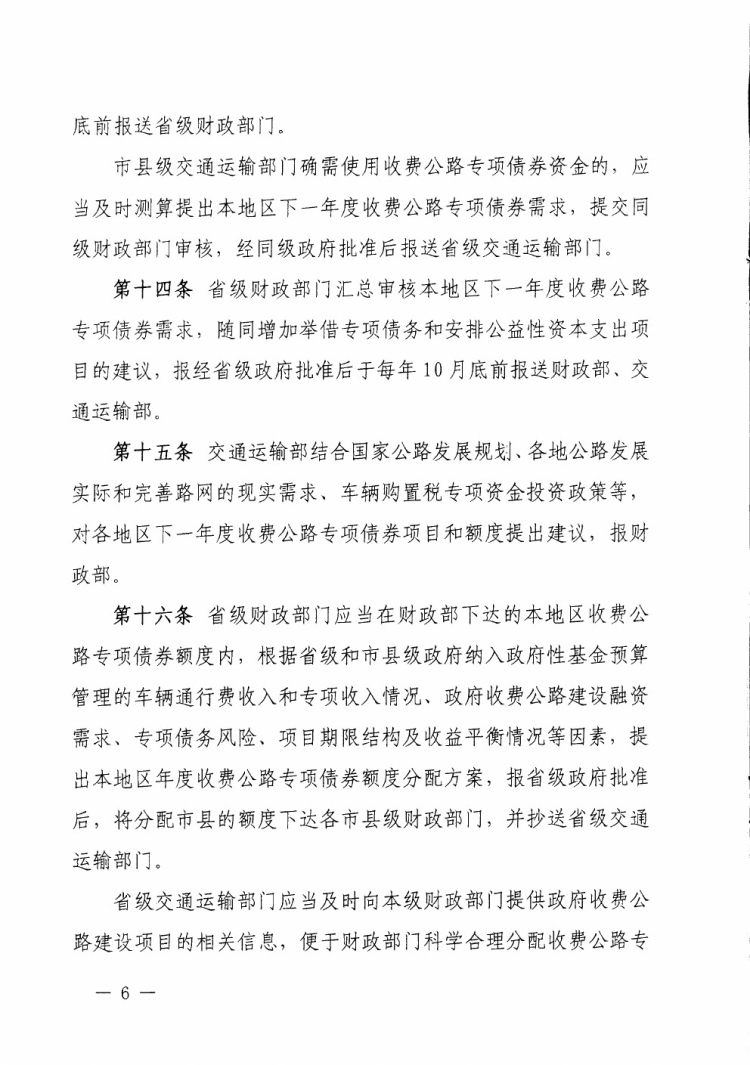 财政部 交通运输部关于印发《地方政府收费公路专项债券管理办法(试行)》的通知