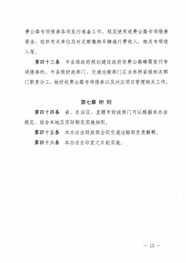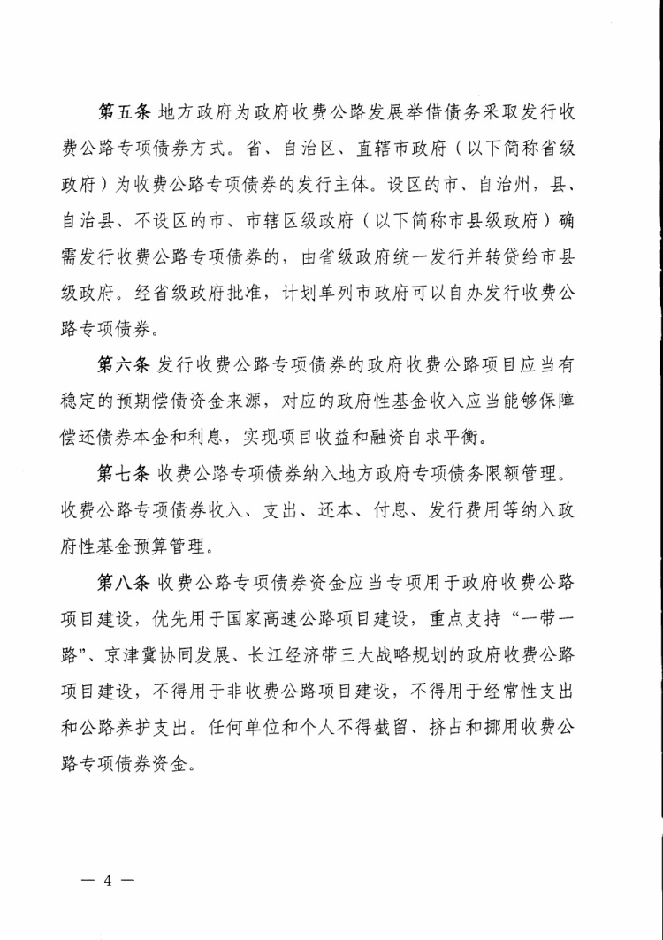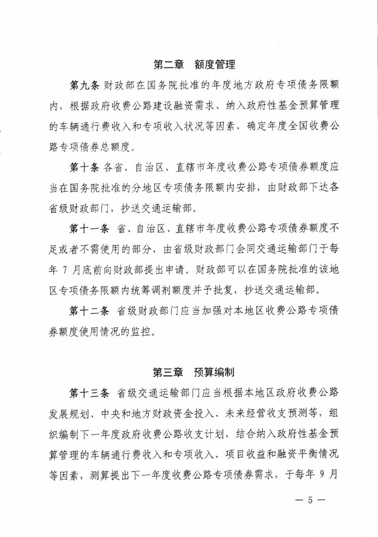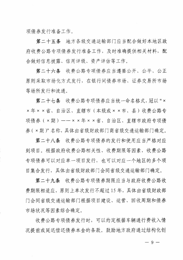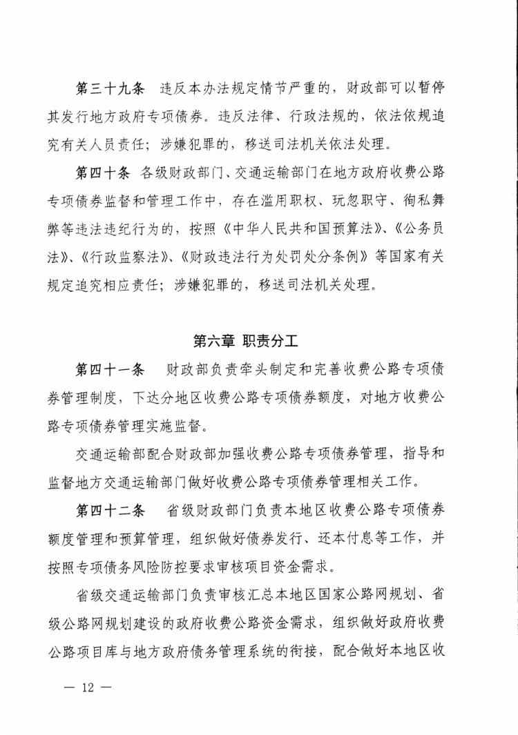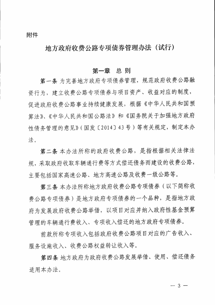 财政部 交通运输部关于印发《地方政府收费公路专项债券管理办法(试行)》的通知