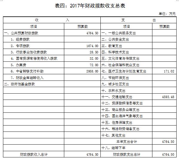 (四)财政拨款收支总表