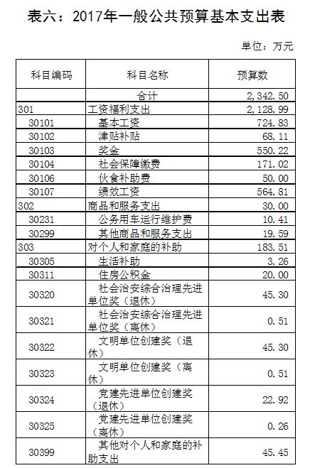 2017年安排一般公共预算基本支出2342.5万元,均为省交通转移支付资金。