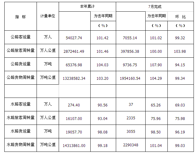 2016年7月份公路、水路客货运输量